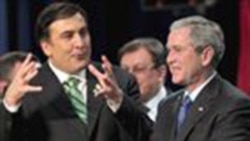 (Сүрөттө: Жорж Буш менен Михаил Саакашвили НАТО саммити учурунда. Архивден.)