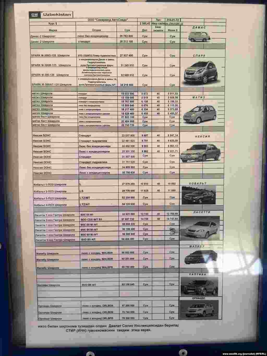 Ушу күндөрү Өзбекстандагы автосалондор өзбек-америкалык биргелешкен GM-Узбекстан ишканасы чыгарган автомобилдерге жык-жыйма толуп турат. Өлкөдө мындай учур мурда болгон эмес.