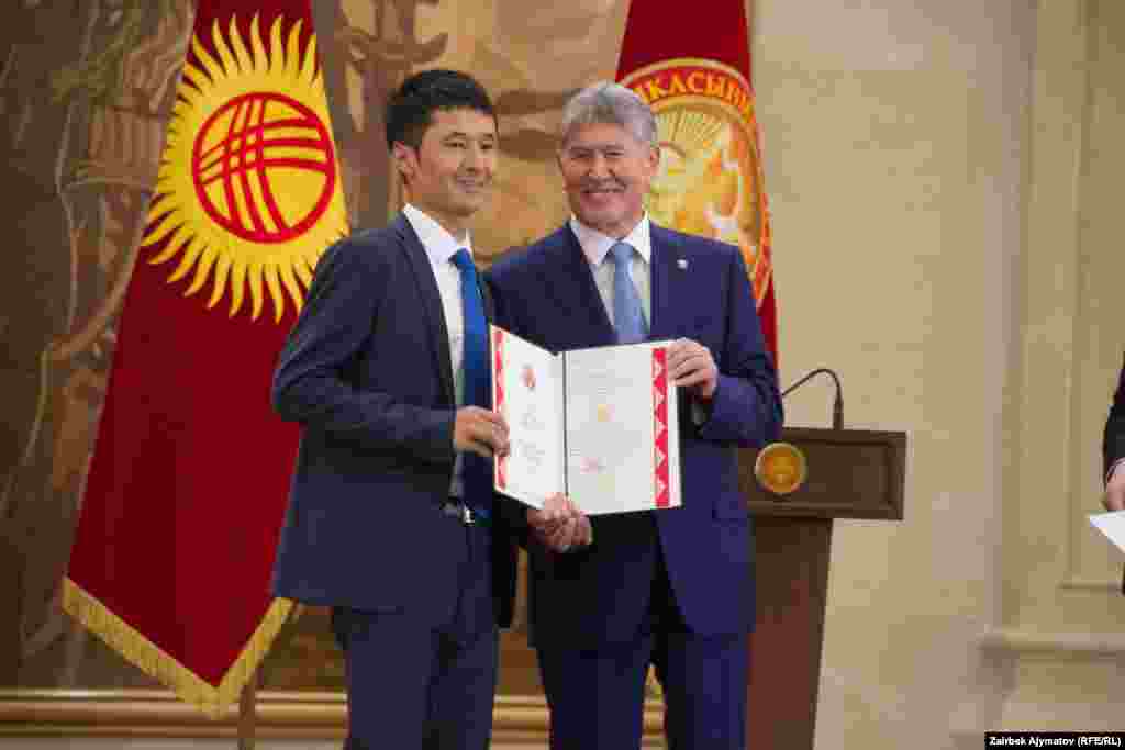 Бүгүн президент Алмазбек Атамбаев Эгемендиктин 25 жылдыгына карата ыйгарылган мамлекеттик сыйлыктарды тапшырды.