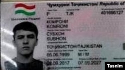 Иран Шираздагы күмбөзгө кол салууга шектелген тажикстандык 23 жаштагы Комрони Субхондун паспортунун сүрөтүн жарыялады.