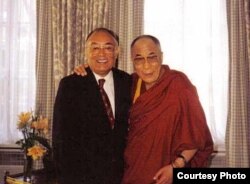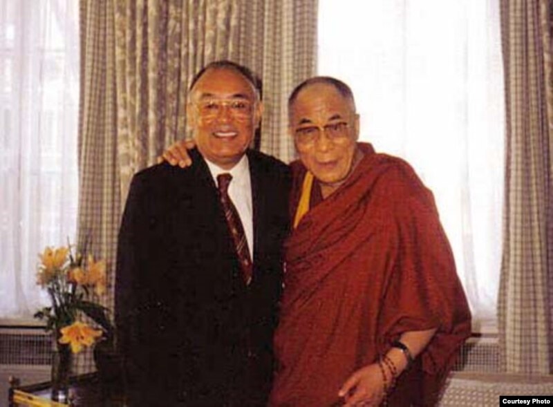 Уйгурлардын дүйнөлүк курултайынын мурдакы төрагасы Эркин Алптекин жана Тибеттиктердин сүргүндөгү көсөмү Далай Лама.