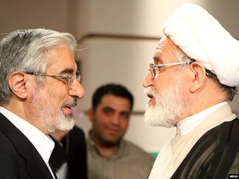 Ислам ыклабынын сакчылар копусунун мурдакы командачысы Мохсен Резаи жана экс-премьер-министр Мир Хусейн Мусави.