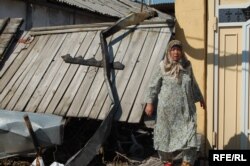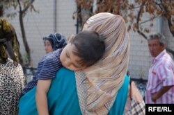 "Азаттыктын" кабарчысын бул жерде көптөгөн адамдар талашып, үйлөрүн көрсөтүүгө аракет кылып жатышты.