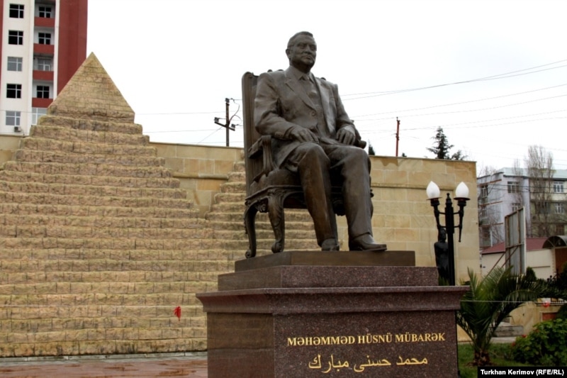 Египет президенти Хосни Мубарактын Азербайжындын байтакты Бакыдагы эстелиги. 31-январь 2011