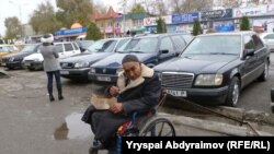 Катуу ооруп, колу-буту иштебей калганда аялы, бала-чакасы таштап кетиптир. 67 жашта болсо да, пенсияга чыгууга үлгүрбөптүр. Түртмө   арабада отурган бул карыя үй-жайсыз адамдар кайыр-садага менен жашай берерин айтууда: