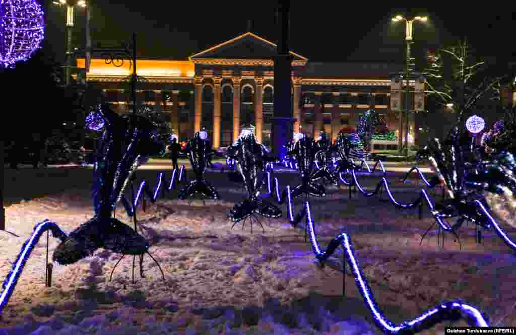 Жаңы жылга саналуу күндөр калды. Калаа тургундары жакындарына белек-бечкек камдап, базарларда соода кызыды. Бишкектин көчөлөрү түстүү чырактар менен кооздолуп, Ала-Тоо аянты кышкы жомокко бөлөнгөн.