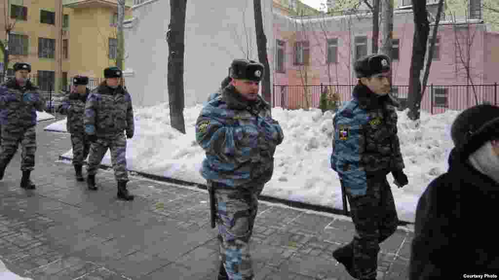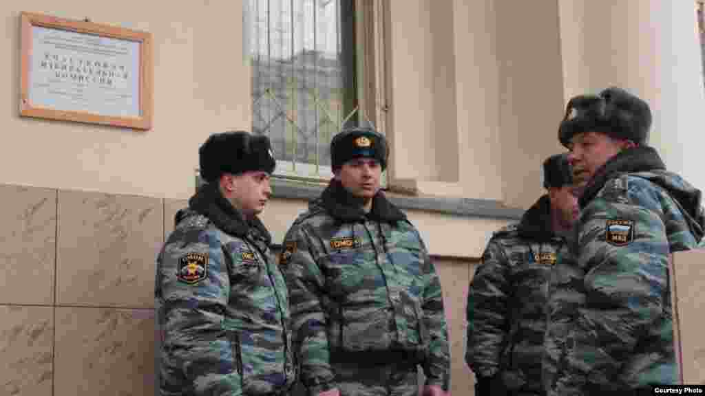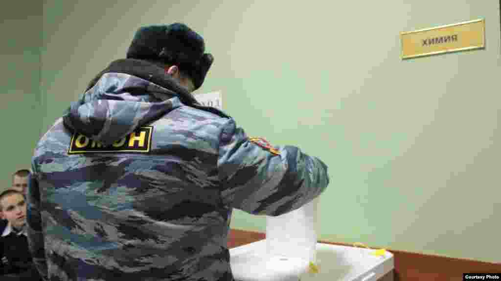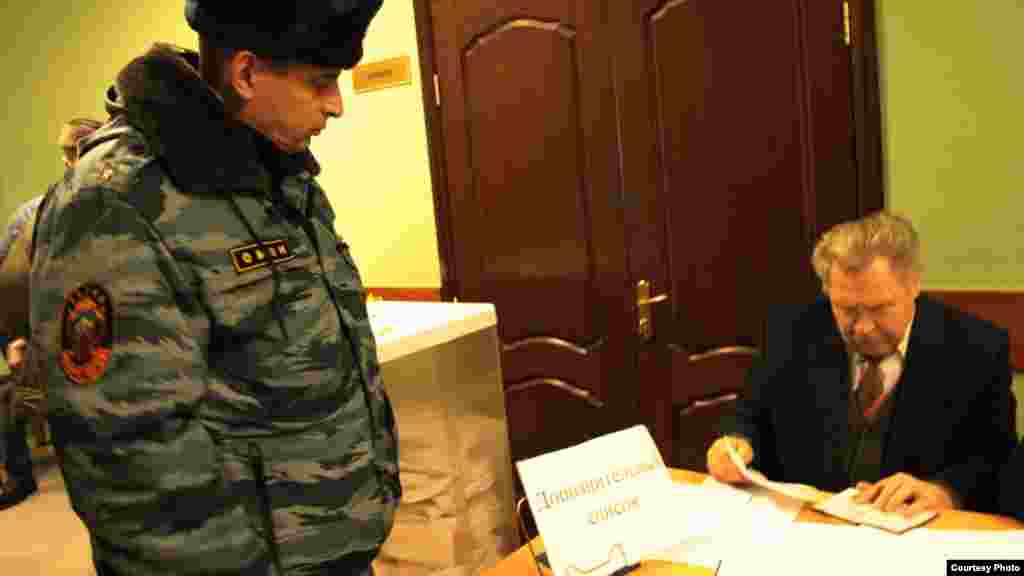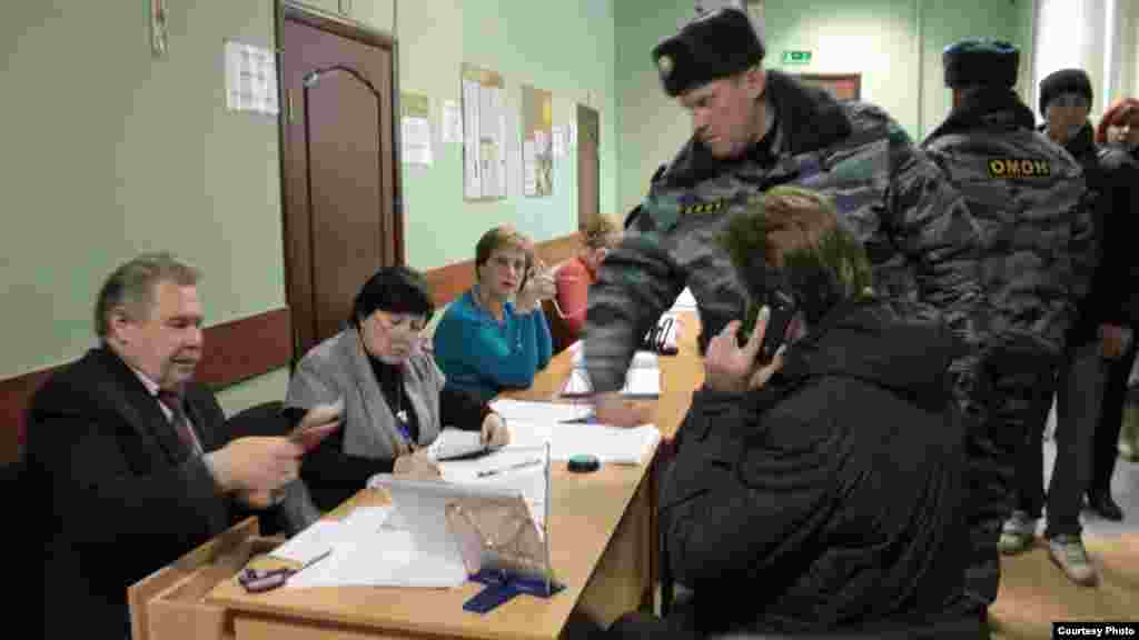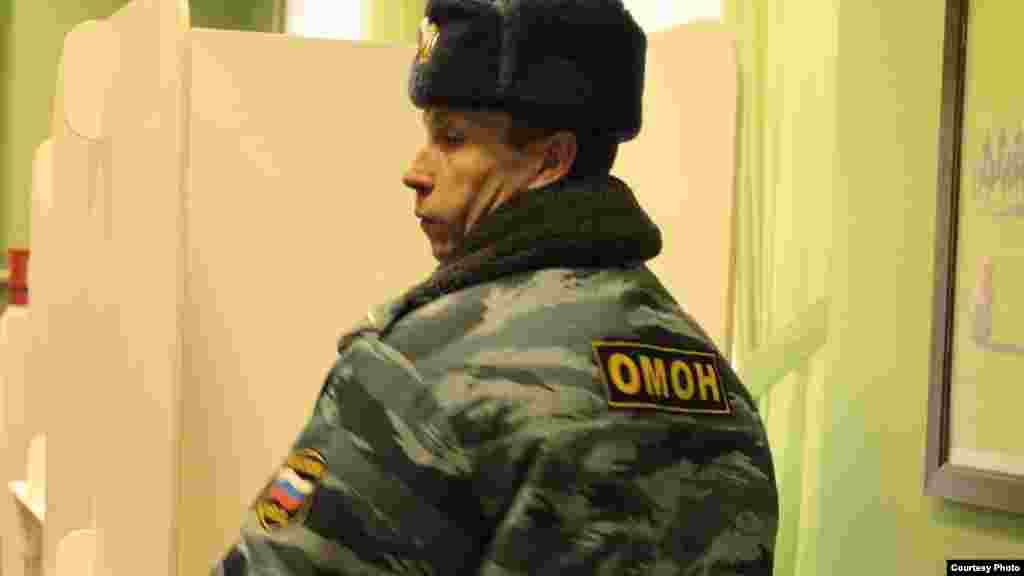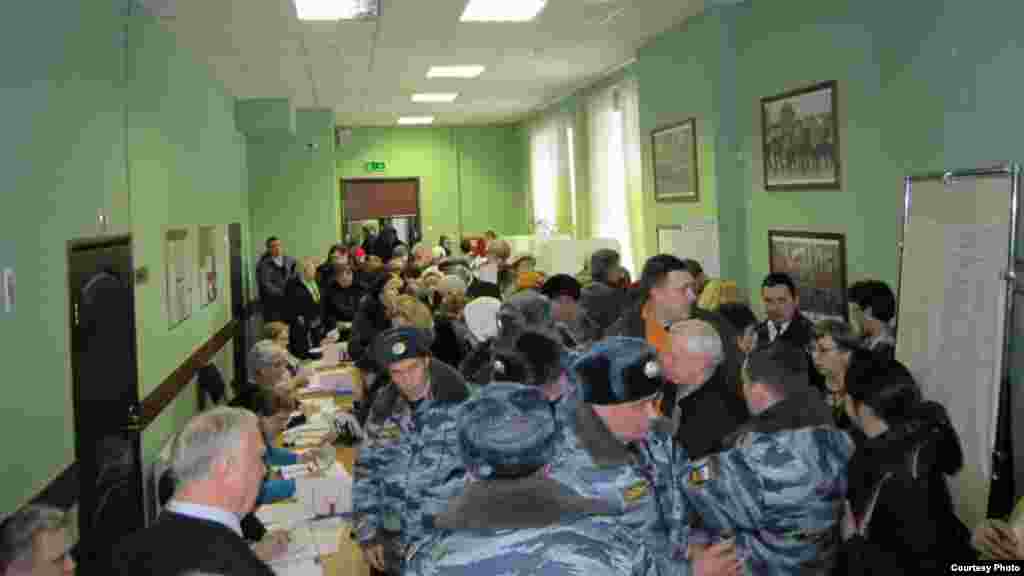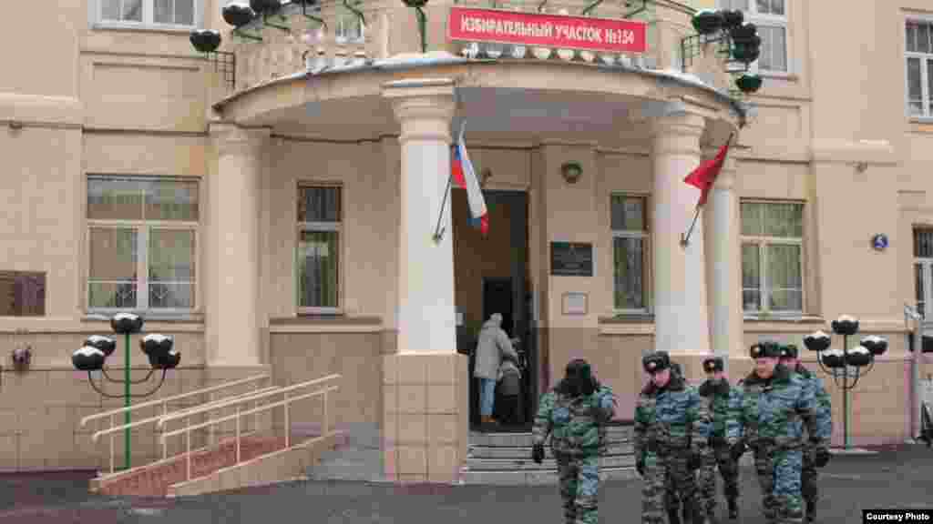Москвадагы № 154 шайлоо бекетине "карусель" ыкмасы менен добуш берүүгө келген полиция кызматкерлери.