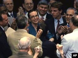 Нааразы демократтар, нааразы республикачылар Конгресстин төмөнкү палатасындагы азчылыкты түзгөн демократтардын лидери Ненси Пеллози демократтарды добуш берүүгө көндүрө алды.